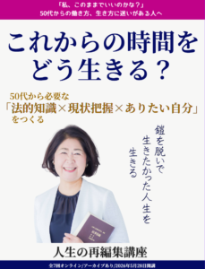職場での役職定年、夫の定年退職、子どもの自立など、環境や状況の変化で生き方や働き方に、迷いや不安を感じる人が少なくありません。